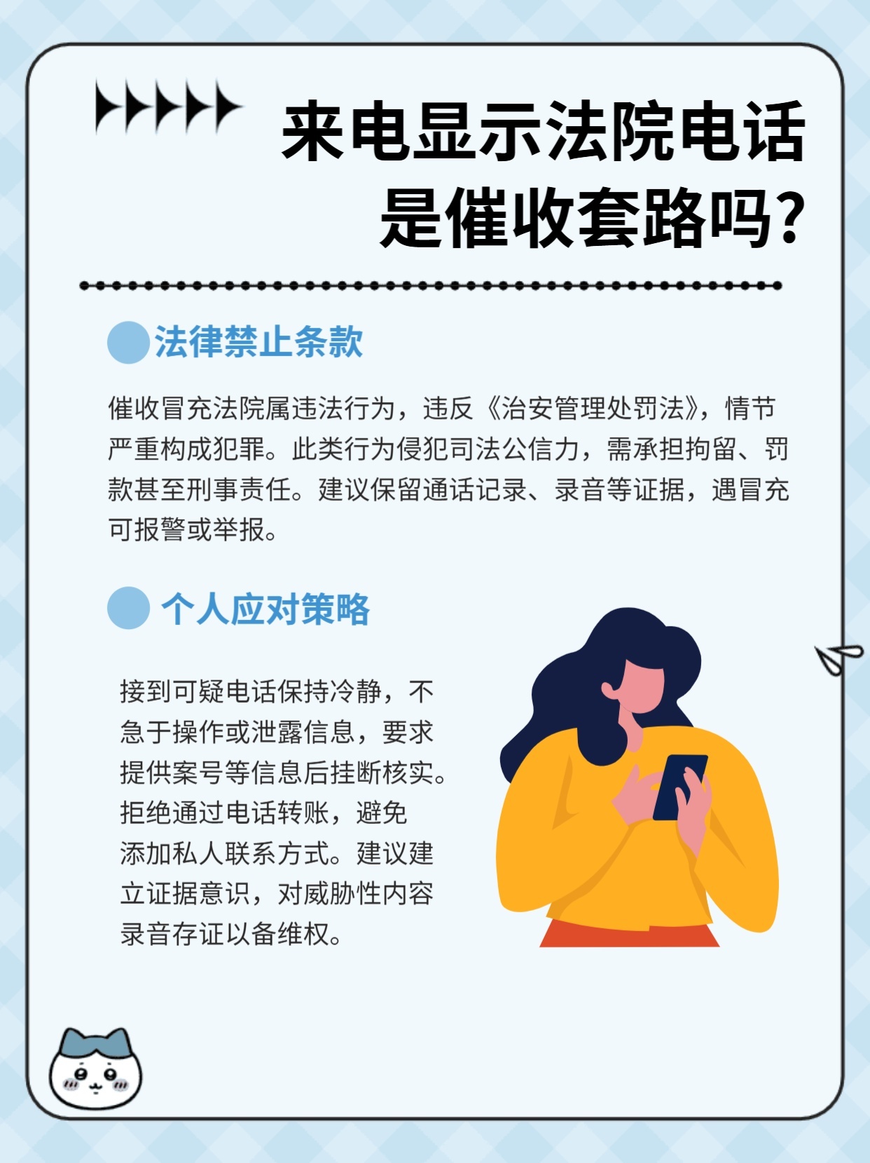资讯 法院打电话不去怎么办如果接到法院的电话而不去,可能会被视为拒绝出庭或不履行相关义务,可能导致法律后果。建议尽快与法院联系并解释情况,遵循法律程序解决问题。如有疑虑,可咨询专业律师。... 2026-02-11 - [阅读全文]